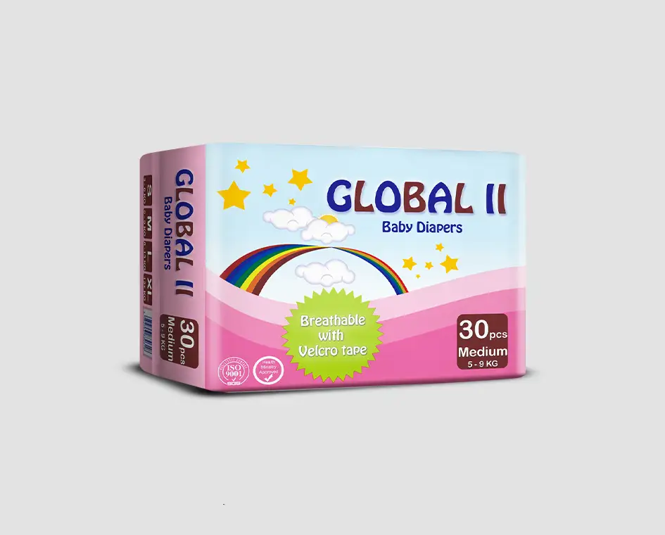 Global II Baby Diapers – Medium (5kg– 9kg)| 30 Pieces in a Pack